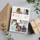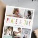 Un design de carte de vacances lumineux et coloré qui dit "Paix et Joie" dans une police ludique. Customisez cette carte avec 6 photos et un accueil personnalisé.