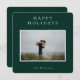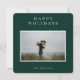 Élégante et simple carte photo avec des étoiles blanches sur fond vert émeraude, "Joyeuses Fêtes" .