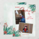 Une carte de Noël à l'aquarelle avec des fleurs dans les coins et deux fenêtres pour les photos. *Lorsque vous ajoutez vos photos, utilisez la touche "rotation" à droite de la page pour aligner votre photo. Si vous avez besoin d'aide, veuillez nous contacter. La carte est facile à personnaliser avec votre texte, police, couleur de police, forme de papier et choix de type de papier. Ce n'est pas exactement ce que vous cherchez ? Tous nos produits peuvent être conçus sur mesure pour répondre à vos besoins sans frais supplémentaires. Il suffit de nous contacter à heartfelthelper@gmail.com. Produits coordonnés disponibles : il suffit de nous demander !