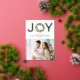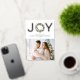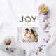 Cette carte de vacances de joie en feuille d'or d'hiver présente une aquarelle peinte à la main et des pinecones disposés comme une belle couronne avec une photo de famille. Le dos comprend un motif correspondant. Trouvez les articles correspondants dans la collection Vacances de Noël Pinecone and Greenery.