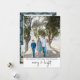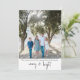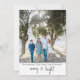 Un Carte photo minimaliste avec un sentiment "Joyeux & Lumineux". Une photo principale à l'avant et 2 photos plus petites et une place pour un message personnel à l'arrière.