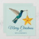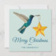 Carte de Noël Joyeuse personnalisée avec un colibri à gros bec avec un ornement étoilé. Ajoutez simplement votre nom. Le message à l'envers "Souhaitez-vous une saison pleine de lumière et de rire pour vous et votre famille" peut être changé ou supprimé pour votre propre message manuscrit. Vous pouvez modifier le style et la taille de police en cliquant sur "Modifier à l'aide de l'outil de conception".