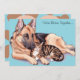 Célébrez l'esprit d'amour et de convivialité avec la carte de vacances mignonne "Câlins de chien de berger allemand et de chat". Avec une illustration charmante d'un berger allemand loyal câlinant un adorable chat, cette carte est parfaite pour partager des vœux chaleureux avec des amis, de la famille ou des amoureux des animaux.