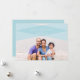 Une belle carte de vacances avec une seule photo et un design moderne inspiré des carreaux en bleu ciel avec des points blancs.