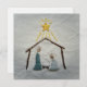 Accrochée à la main sur le tissu de mousseline, cette simple scène de Marie et Joseph avec leur nouveau bébé partage la joie de la saison.