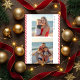 Une carte de Noël/photo classique avec une touche moderne. Cette carte comporte deux emplacements pour photos alignés avec les bords supérieur et inférieur, avec une fine bordure de rayures de canne à sucre sur les bords droit et gauche. Le dos de la carte continue le thème avec un motif de rayures de canne à sucre rouge et blanc à fond perdu. Deux boîtes de texte verticales encadrent les photos. Personnalisez-les avec votre propre message et nom.