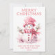 Pink Christmas Snowman pour la carte de Noël en bleu pour un accueil festif de vacances à la famille et les amis.