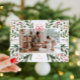 Une élégante carte de vacances avec une photo présente des illustrations botaniques originales à l'aquarelle et un ruban rouge sur le dessus.