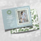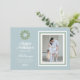 Célébrez la saison des fêtes avec ces élégantes cartes dotées d'accents de verdure bleus et aquarellés. Ce design présente un monogramme personnalisé dans une couronne verte aquarellée avec la possibilité d'ajouter votre message personnel et votre photo.