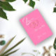 Carte de vacances plate rose avec nom de cœur en feuille d'or et citation drôle