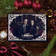 Diffusez la joie des fêtes avec une élégance vintage cette saison avec une carte de vœux de Noël gothique pliée et personnalisable. Inspirée de l'éphémère antique victorien, la couverture représente votre photo de famille personnelle dans un cadre gothique sophistiqué.
