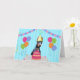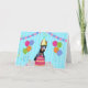 Doberman chien avec gâteau et ballons est une carte d'anniversaire parfaite pour quelqu'un qui aime cette race.