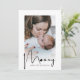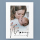 Envoyez à votre mère cette carte moderne de jour pour les mères photographiées, avec un message de bienvenue 'MOMMY HAPPY MOTHERS DAY' et votre photo préférée et au verso tapez votre propre message ou gardez le modèle. Vous pouvez modifier les styles, la taille et les couleurs des polices de texte en cliquant sur le lien personnaliser après la personnalisation.