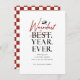 Année la plus étrange Jamais, carte d'humour de vacances. Caractéristiques de la carte, accent OVNI mignon avec support motif de vérificateur rouge et blanc.