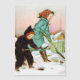 enfants magnétiques chaussant neige vintage carte de voeux de Noël