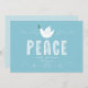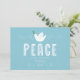 Cette carte de vacances sans photo présente l'illustration d'une colombe au-dessus du mot paix sur un arrière - plan bleu clair. Il a de l'espace pour un salutation, votre nom, et l'année.