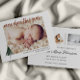 Partagez avec toute votre famille et vos amis que vous avez ajouté plus de joie cette année. Cette faire-part de naissance simple et élégante sera la meilleure façon d'annoncer l'arrivée de votre nouveau bébé. Customisez le texte à l'avant et à l'arrière de la carte. Personnalisez-vous avec 1 photo sur le devant et 3 photos sur le dos, et toutes les informations sur l'état de naissance de votre bébé.