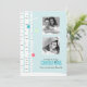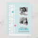 Carte de vacances personnalisées adorable présente une belle illustration vectorielle d'une scène hivernale fantasque de décorations de noël accrochées aux bouleaux sur un bel arrière - plan bleu clair. Personnalisez avec vos photos de famille et un message de votre choix.
