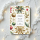Envoyez des souhaits chaleureux et élégants avec cette carte de vacances de luxe rouge, vert et or. Avec de jolis flocons d'or, des éléments de couleur aquarelle, des détails en pin et un motif géométrique abstrait moderne avec une typographie élégante, ce design hivernal sophistiqué apporte un charme intemporel à vos salutations festives.