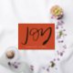 Une feuille rouge et or joliment audacieuse "JOY" orne cette carte festive.