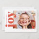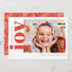 Il s'agit d'une carte de vacances moderne, moderne et lumineuse, rouge et blanc, avec une photo simple minimaliste combinée à "joy" dans une police serif audacieuse et classique. Modifiez facilement la photo, éteignez le nom de famille et ajoutez un message en utilisant les options de modèle fournies. Veuillez contacter le concepteur pour toute question ou problème concernant ce design ou pour tout produit correspondant.
