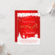 Carte de vacances de société rouge rayonnante avec des flocons de neige et le village de neige à anneau dans la nouvelle année! Téléchargez facilement votre logo, et customisez cette carte autour. Gold Merry & Bright graphisme est parfait pour Noël, Hanoukka et Nouvel An.
