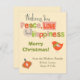 Mignonne et joyeuse ! Cette carte de Noël à plat style invitation chic présente du texte stylisé rétro dans différentes couleurs qui dit Wishing You Peace, Love, and Happiness. Les couleurs sont le vert, le rouge et le rose. Avec le texte est un ornement ampoule d'arbre assorti et un oiseau rouge avec une écharpe d'hiver verte. Lumineux et coloré ! *L'image clipart utilisée dans cette conception est protégée par le droit d'auteur de Encore Software, Inc., qui permet son utilisation à ses concédants de licence. Tous droits réservés. Le dos de la carte est assorti à la crème légère.