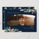 Eau rustique baies d'hiver et verdure, carte de vacances photo. Caractéristiques, cadre de masque photo de brosse moderne, coordination des arrière - plans bleu marine et soutien motif correspondant.
