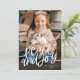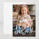 Une carte de vacances simple avec les mots « paix et joie » écrits à la main et votre photo préférée.