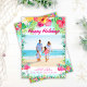 Envoyez vos vœux de vacances tropicaux avec cette carte photo lumineuse de style hawaïen. Caractéristiques "Joyeuses Fêtes" en typographie script, votre photo côtière préférée encadrée de fleurs d'hibiscus et de feuilles de palmier aquarelles et votre message de vacances personnalisé. Une carte de vacances tropicale amusante proposée par Cherry Lane Designs !