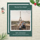 Envoyez des salutations de vacances dans un style vintage nostalgique moderne. Une bordure de timbre postal encadre votre photo de carré unique. Un style rétro minimaliste et une annulation amusante superposée avec un cercle et des lignes ondulées customisées avec la date de cette année ajoutent au charme authentique. Parfait pour les photos de voyage ou toute photo que vous voulez partager avec un style unique. Customisez l'accueil, personnalisez avec votre nom de famille et vos noms individuels. Sur le dos : Une bordure de timbre-poste à pétoncles. Couleur : Vraiment Vert Tout le texte et toutes les couleurs peuvent être customisés.