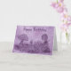 Les champignons poussent ensemble dans un pré. Un design dessiné à la main à l'encre violette. Sur le devant, on peut lire "Joyeux anniversaire" et à l'intérieur, on peut lire "Bonne fête !"