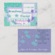 Ce carte de visite lunatique est fait dans un patchwork des conceptions, avec des fleurs, pois, et les rayures seraient grandes pour un spa de jour, un fleuriste, une boulangerie, des boutiques de cadeaux, un magasin d'enfants, et un plus. Les couleurs à la mode de la sarcelle d'hiver et de la lavande lui donne ensemble un amusement la qualité apparente que les clients n'oublieront pas. Customisez avec votre information pour personnaliser pour vous-même ou votre magasin.