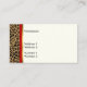 Carte de visite chic élégant fait dans un motif repéré brun et noir de jaguar, avec un rouge solide au-dessous de lui. Les bandes goldtone sous le poster de animal forme un bloc des textes, avec le texte noir fait sur commande, et les graphiques d'un talon stylet d'impression de jaguar décore l'avant du fond de la carte. Le dos est fait en ivoire, avec la copie de jaguar, de l'aile gauche bordée avec une bande de rouge et d'or. Le texte noir, sur l'avant et le dos, est prêt à personnaliser à vos besoins. Beau tenez la carte qui emballe une première impression de stupéfaction.