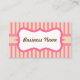 Les rayures roses et crème donnent un style rétro carte de visite. Customisez ce carte de visite mignon pour répondre à vos besoins en changeant l'information, le style de police, la taille de police, etc... Utilisez ces cartes de visite pour une boulangerie, boutique, boutique, glaces, chocolatier, garderie, école, pré-école, salon, garderie, etc...Les créations sont de l'art original.