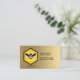 carte de visite apiculteur avec une icône d'abeille au miel avec des ailes tendues au-dessus d'une forme hexagonale jaune citron et noir et d'un dégradé de bronze doré en finition faux brossé à l'avant et à l'arrière. Nous pouvons vous customiser ce design sur demande lorsque vous utilisez le lien "Contact" pour notre boutique ci-dessous. © dotpattern