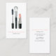 Design carte de visite élégant avec une belle illustration d'une brosse à maquillage, un rouge à lèvres et un mascara. Parfait pour les maquilleurs, les cosmétiques, les créateurs de mode, les coiffeurs, les mamans en déplacement et bien plus encore !<br>Vous recherchez des produits correspondants ? Envoyez-nous un message à heartlockedstudio@gmail.com et nous serons heureux de vous aider.