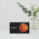 Un carte de visite avec un motif de photo marguerite africaine. Nom d'entreprise etc sur le devant avec d'autres détails sur le verso avec le même motif et le même style.
