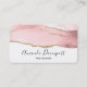 Carte de visite avec un design agate élégant et tendance. Aquarelle rose rousse avec un look d'agate en marbre subtil et ruban de gloire doré superposé entre les deux.