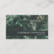 Carte de visite avec une photo muette d'aiguilles de sapin en turquoise foncé.