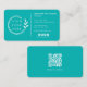 Ajoutez votre logo Social Media QR Code Corporate Blue Green Carte de visite avec votre logo d'entreprise, avec votre nom, contact et informations sur les médias sociaux sur un arrière - plan bleu vert. Au contraire, votre code QR personnalisé pour vos clients à analyser. Personnalisez en modifiant le texte dans la zone de texte fournie. Conçu par ©Evco Studio www.zazzle.com/store/evcostudio