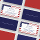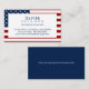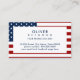 côté avant : votre nom et adresse (ou toute autre information supplémentaire) et la profession personnalisée... rectangle blanc avec le drapeau américain comme cadre... côté arrière : bleu uni avec quelques mots personnalisés... un concept visuel moderne et patriotique pour une présentation élégante