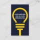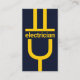Une couverture tout bleu foncé est accentuée par une prise électrique jaune surdimensionnée qui héberge votre titre de travail "électricien" en haut. Vous pouvez modifier ce paramètre pour qu'il corresponde à vos propres besoins de service. Cette prise d'alimentation se met à allumer une ampoule à l'arrière de la carte. Au-dessus, la prise d'alimentation de l'avant alimente une ampoule jaune. À l'intérieur de cette ampoule se trouvent votre nom prestigieux et les coordonnées. Il s'agit d'un grand design minimaliste pour les thèmes électriques.