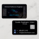Ce carte de visite noir haut de gamme identifie un développeur de logiciels Android expérimenté à la recherche d'un rôle de développement d'applications senior dans une société technologique de premier plan. La carte fournit des informations de contact pour un professionnel spécialisé dans la création et l'optimisation d'applications mobiles Android. Le profil de désignation souligne l'expertise du candidat dans le domaine.
