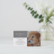 Un design carte de visite simple et moderne avec des blocs gris et blancs pour votre texte, avec de l'espace pour ajouter vos propres photos à l'avant et à l'arrière. Montré avec des photos de chiens et un thème de la garde d'animaux, vous pouvez customiser ce carte de visite pour convenir à votre entreprise.