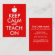 Modèle de parodie blanc rouge personnalisable "Keep Calm and Teach On" pour enseignants basé sur l'affiche classique. Vous pouvez supprimer les informations de contact sur le dos ou modifier la taille et le style de la police.