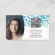 Des paillettes bleues et violettes déclenchent l'arrière - plan de ce design carte de visite avec le nom et le titre du modèle à l'avant. L'arrière comprend une conception coordonnée et des couleurs avec des champs de texte pour le nom commercial et les détails ainsi qu'une photo d'espace réservé et un code QR. Remplacez la photo de l'espace réservé par la vôtre et le code QR par un lien vers votre site Web, les références, les photos ou tout autre emplacement. Remplissez les champs du modèle ou cliquez sur customiser pour sélectionner le style, la taille et la couleur de police que vous souhaitez. REMARQUE que l'occupation n'offre qu'un nombre limité de caractères d'une ligne. Ajoutez cette conception, le cas échéant, à l'un des autres produits du défilement de transfert. Photo de l'espace réservé avec l'aimable autorisation de pixabay.com.