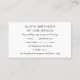 Un carte de visite de service pour chiens et animaux domestiques. Parfait pour un promeneur de chiens, pensionnaire de chiens, gardien de chiens ou garderie de chiens. Sur un arrière - plan blanc, des images aquarelles d'une meute de neuf chiens dont un beagle, Dalmatien, le labrador, le collie frontalier et le berger allemand sont montrées. Personnalisez-vous en ajoutant vos coordonnées commerciales et de contact à l'avant et à l'arrière.