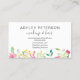 Carte De Visite Aquarelle florale verte rose vif moderne