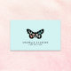Elégant et joli carte de visite avec un design de papillon bleu et rose aqua sur un arrière - plan vert menthe. Créé pour esthéticiens, spas, cosmétologues, coiffeurs, massothérapeutes et moniteurs de yoga.